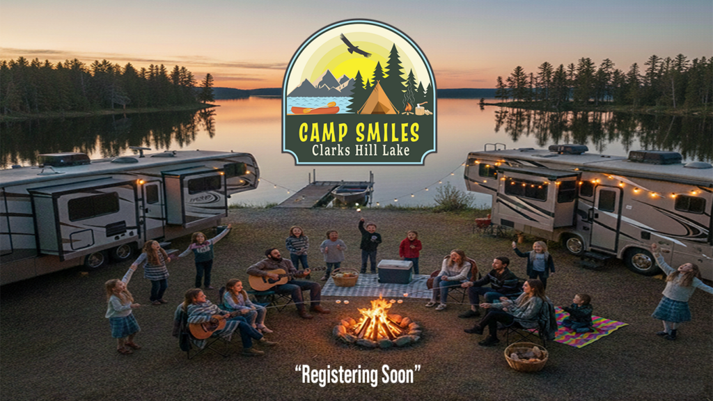 Camp Smiles is hosted in Appling, Georgia, at Wildwood Park on Clarks Hill Lake, a reservoir located at the border between Georgia and South Carolina in the Savannah River Basin. With over 71,000 acres of water and 1,200 miles of shoreline, one can enjoy boating, tubing, swimming, fishing, hiking, and camping.